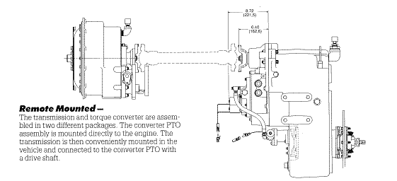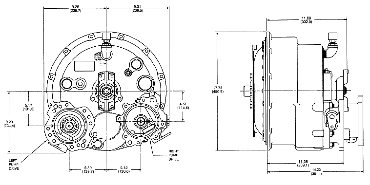 MOUNTING SAE# 3 dry converter housing with flex plate converter drive Direct engine mounting Assembly may be rotated so pump drives are on top (180 degrees from illistration)