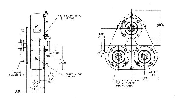 | Output Torque (Max.): 650 lb.-ft (880Nm) per pump pad | OIL |