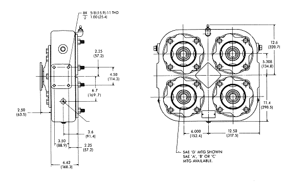 | Output Torque (Max.): 650 lb.-ft (880Nm) per pump pad | OIL |
